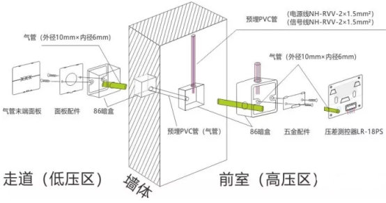 在前室、樓梯間壓力(壓差)傳感器設(shè)備之前,建議依照下圖做預(yù)埋處理,設(shè)備將更加便利,且更加漂亮。
